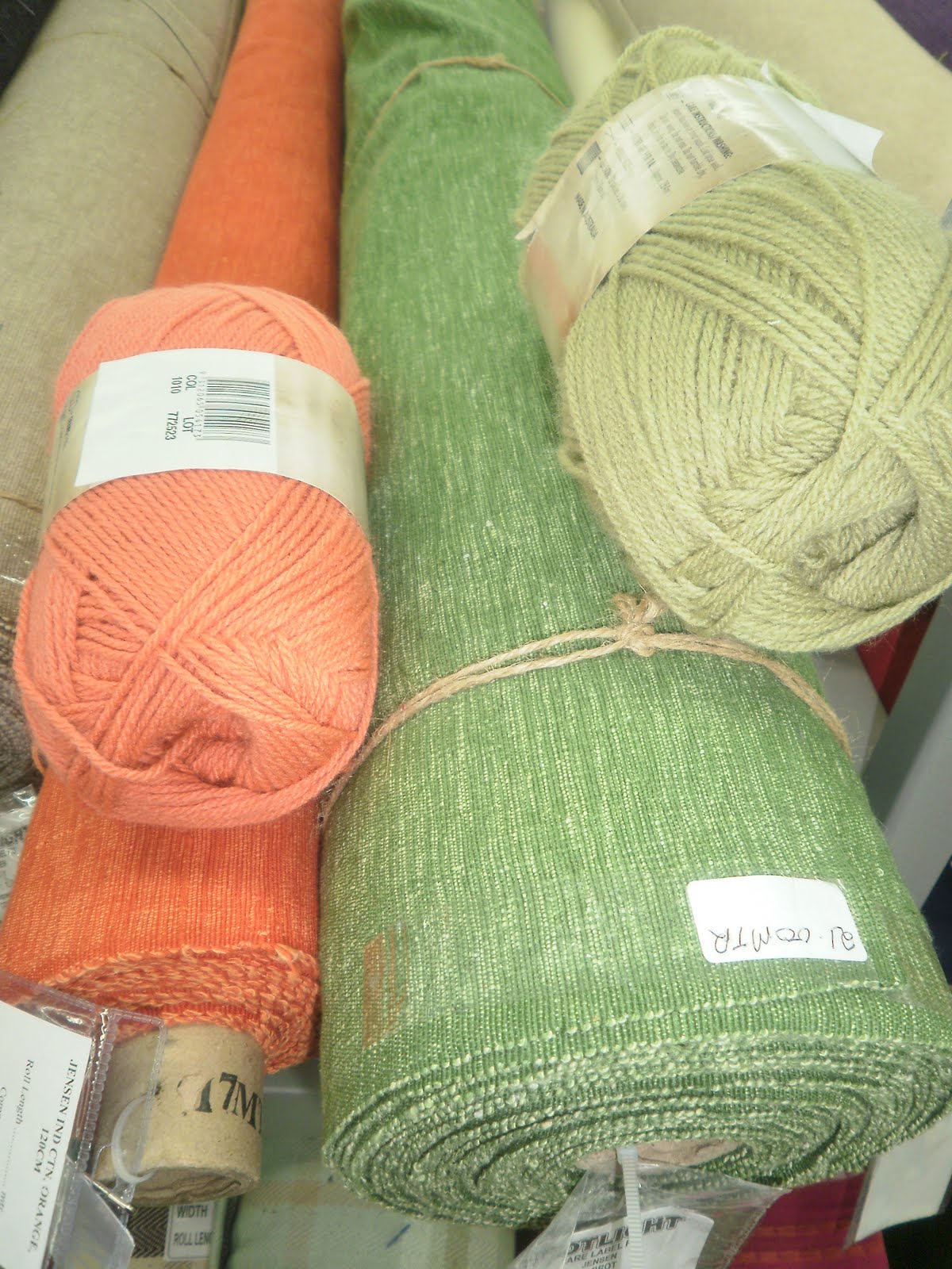 I indulged myself today in a two hour visit to Spotlight. With some ideas in my mind for the upcoming projects, I thought I'd go and have a look, mix and match. Usually, I don't know what I need, but as soon I am there surrounded with the fabric, wool, cotton threads, buttons, knitting and crocheting needles my mind starts buzzing and before you know it, I have stacks of colours and materials under my arm. Isn't it just the case, it takes time to design an item! What materials, what patterns, what colours... so many whats? So, here it is! Just so that I can look at it and let my ideas evolve... Out of this lot I might come up with a rug, a scarf or maybe even something else???